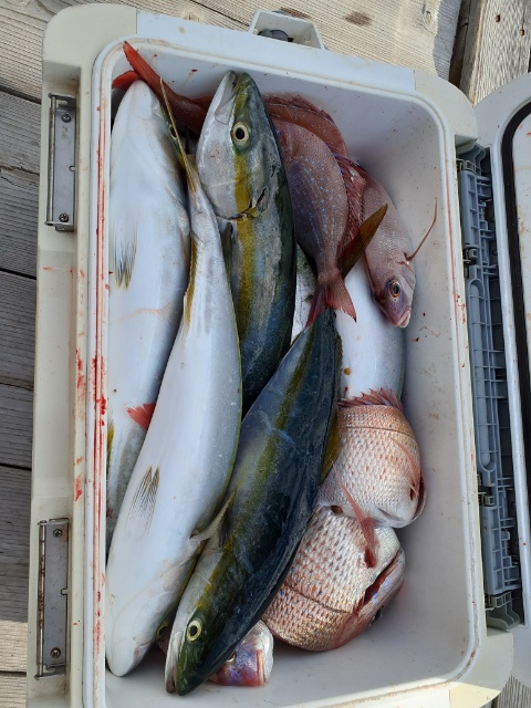寮船はワラサや良型マダイをあげてました。