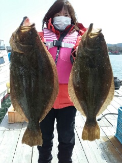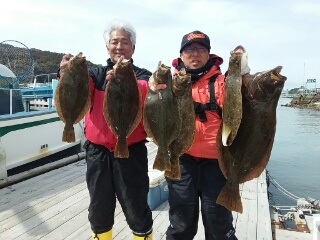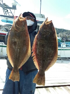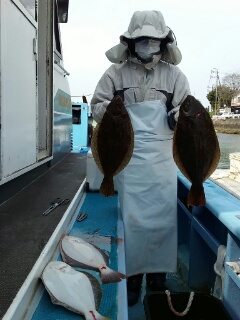 ヒラメ 41cm〜60cm。 0〜3枚。船中12枚。