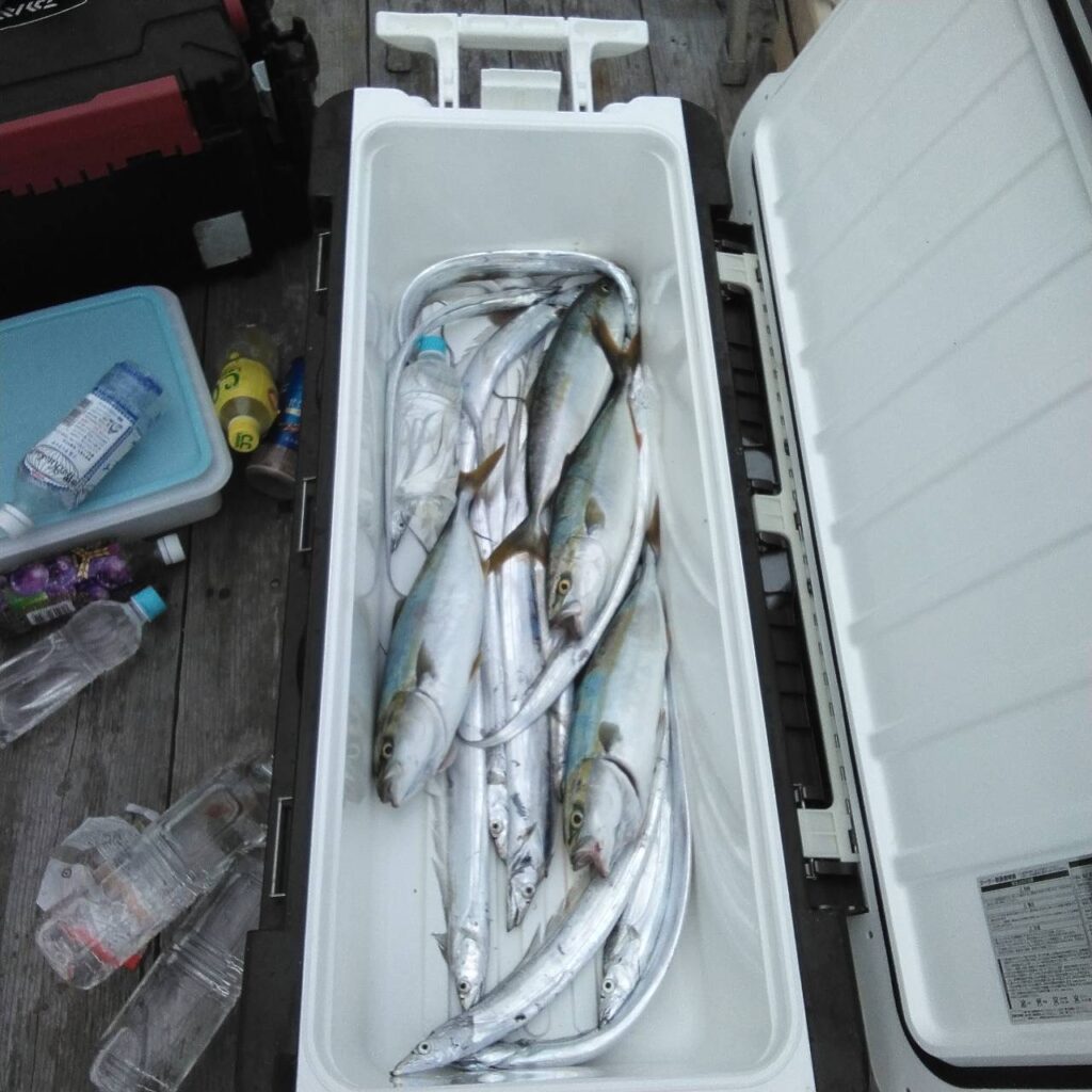 今日も出ましたよ。朝一ジグでサワラを釣りましたよ🎣小学4年生の男の子がいいサワラを釣りましたよ🎣🎣いつ来ても釣りますね‼️大したもんです😁 お父さんはタチウオだけでした😭 下潮になったらタチがよく釣れましたよ‼️みなさん、よく頑張ってくれました。お疲れ様でした。ご乗船ありがとうございました。明日も出ます、募集中です、少し風かな…