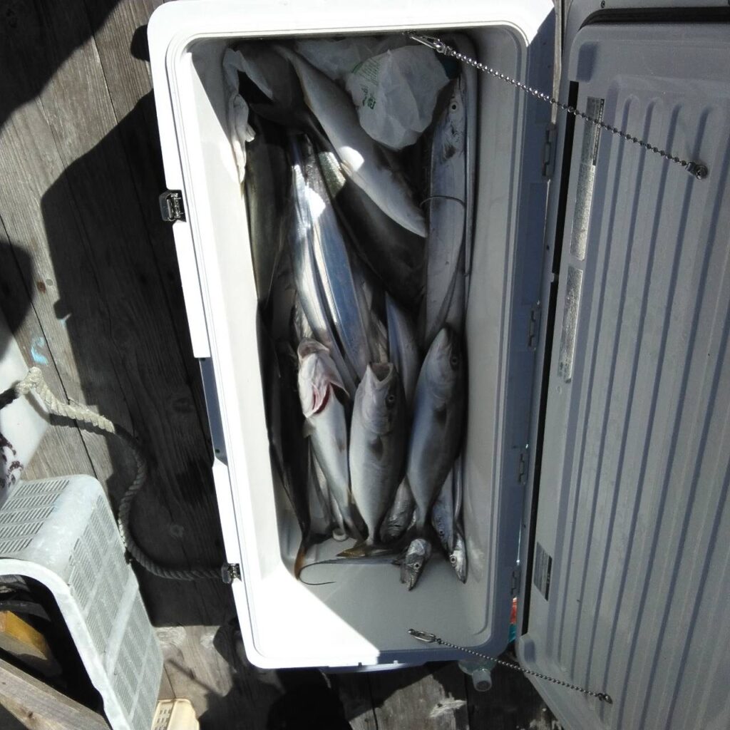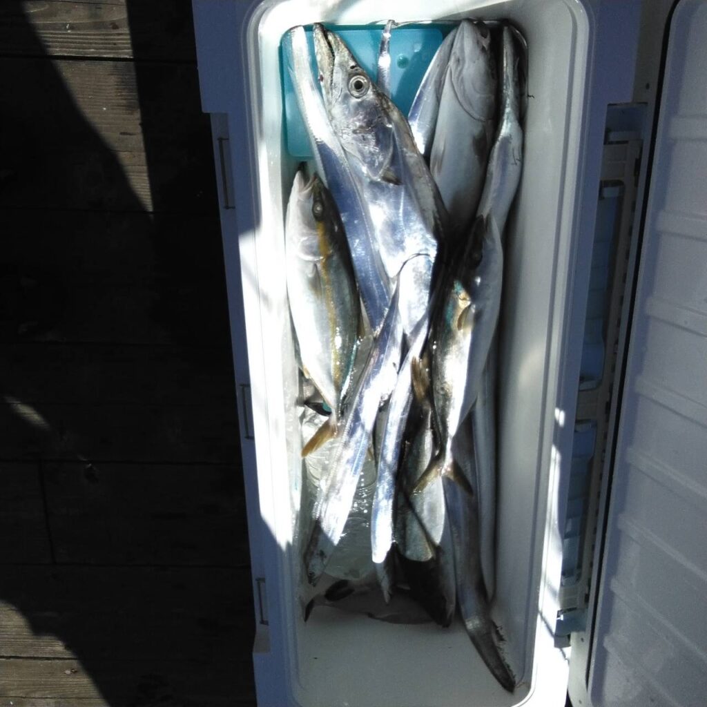 今日も出ましたよ。朝一ハマチをバタバタと釣れましたよ。風もちょっとあって釣りづらかったです。タチウオに走り、ドラゴンとタチウオがよく釣れました。昼頃に風が強くなってきて波も深くなってきたので早上がりしました。