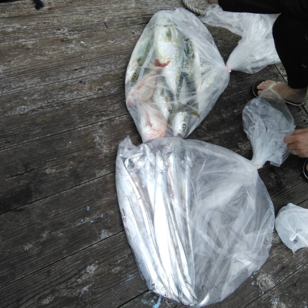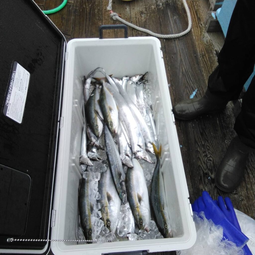 今日も出ましたよ。朝一、ハマチとサゴシを釣ってタチウオが釣りたいと沖に走り、風と波がだんだんと強くなってきたがタチウオがポツポツ釣れましたよ。
