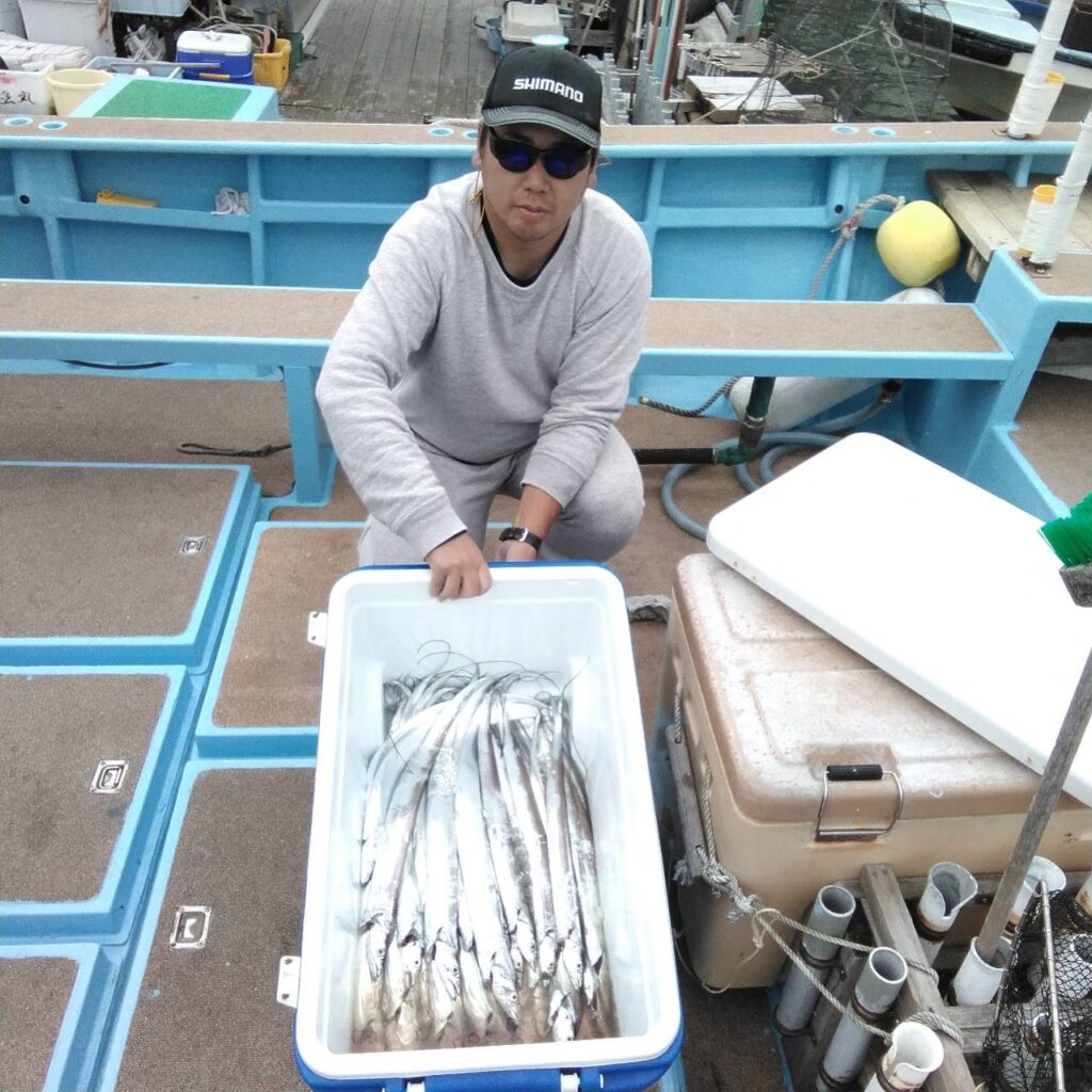 今日も出ました。タチウオが釣りたいと沖に走り、前半はポツポツと釣れて