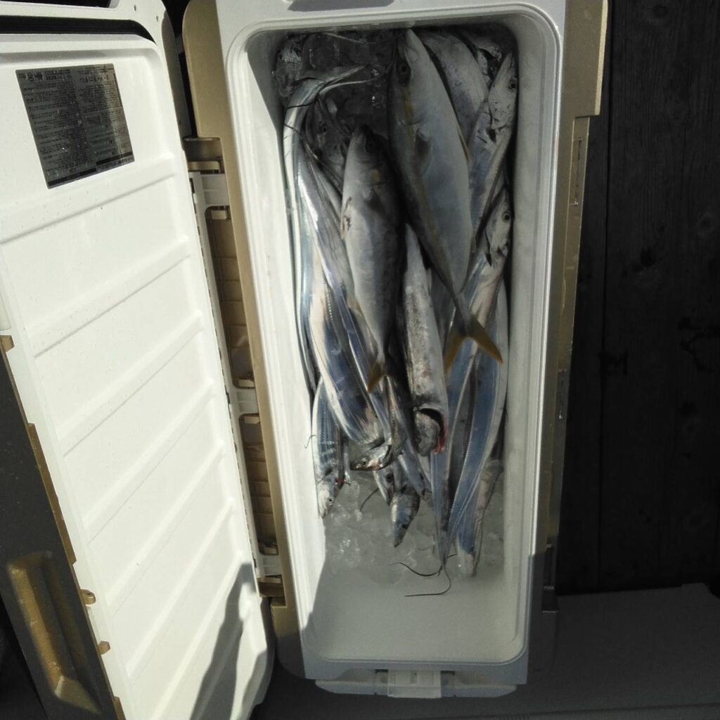 今日も出ました。朝一から風もあって鳥山もあってあちらこちらでボイルしていて、どてらで流して、キャストしてハマチとサゴシが釣れましたよ。ブリはなしでした。後が続かず、タチウオに走り、風と波が高く釣りづらかったが反応もよく釣れましたよ。