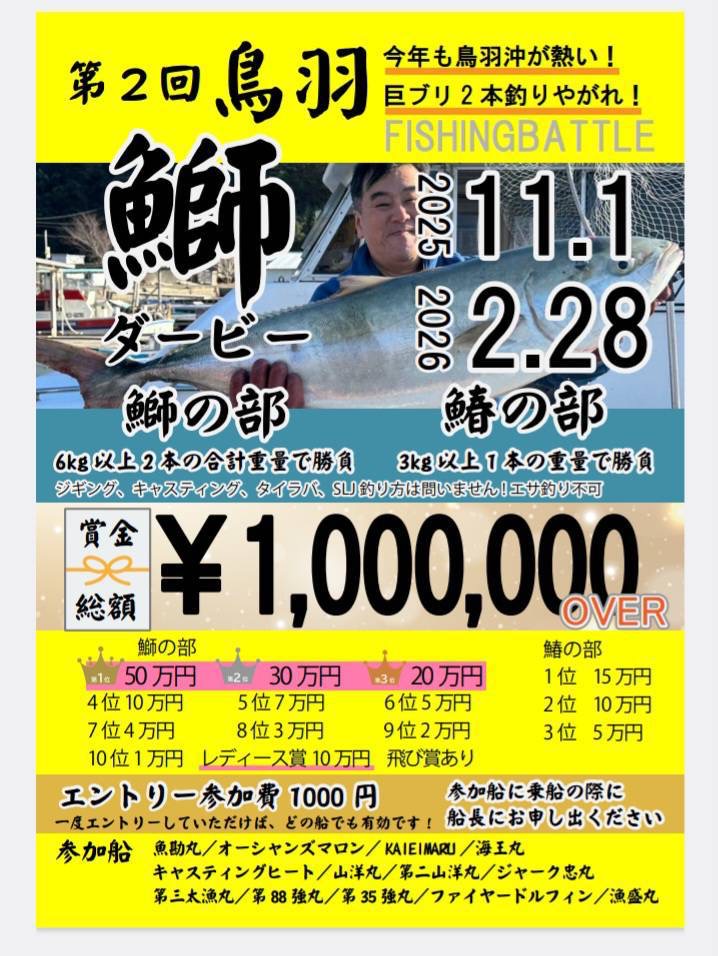 タチウオ・サワラ・ワラサ・マダイ・カンパチ・赤ヤガラ・ハマチ・キジハタ・ガシラ・ニコニコ