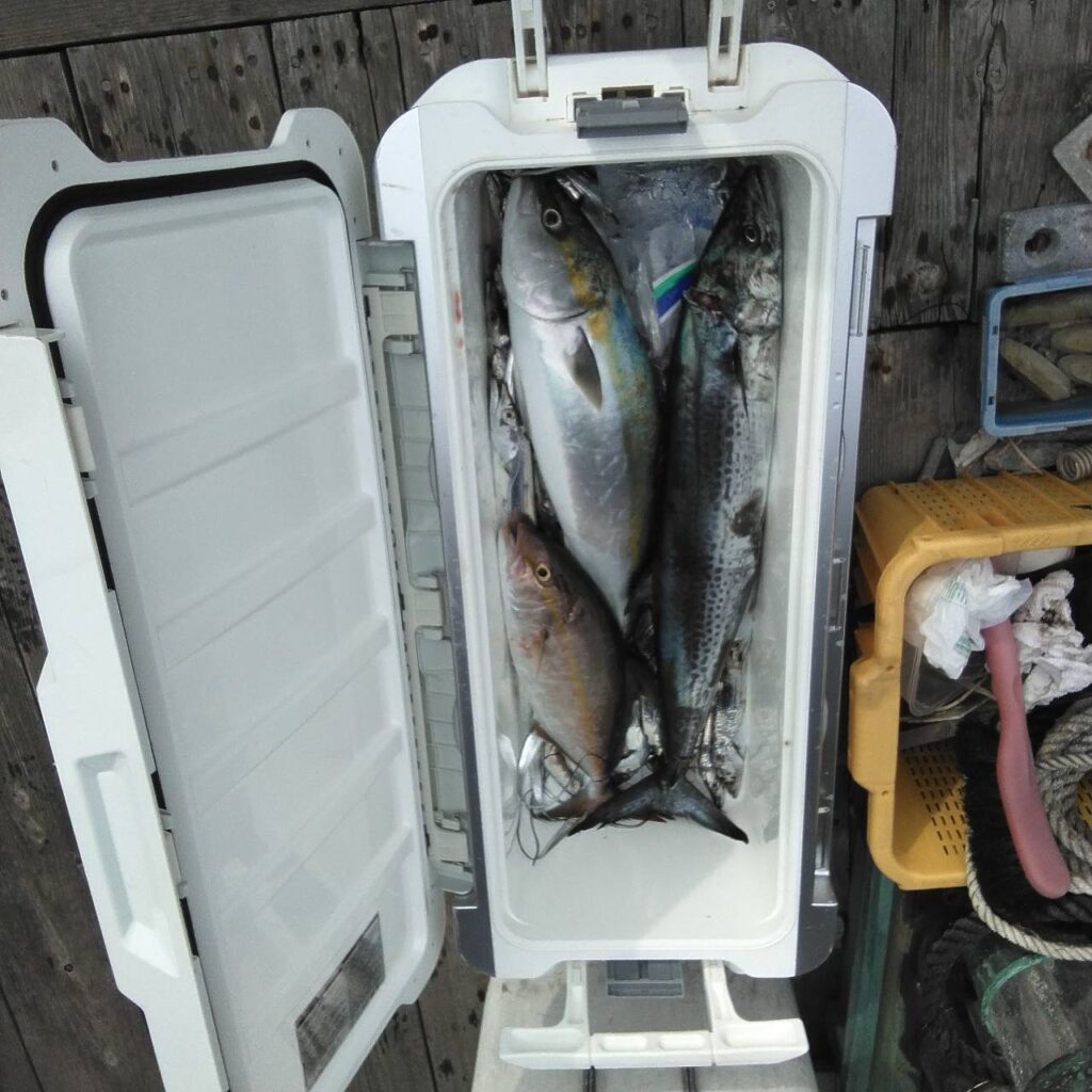 今日も出ましたよ。天気もよく朝一から青物狙い。ワラサとサワラとカンパチがポツポツ釣れました。サワラのラインカッターも多かったです。大きなブリもタモ入れ前にバラシました。バラシが多かったです。もったいないです。