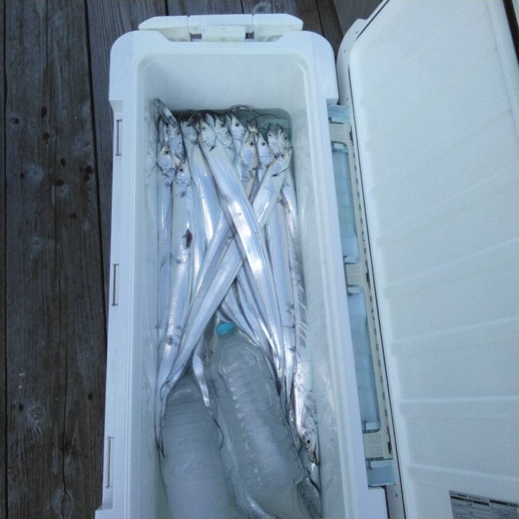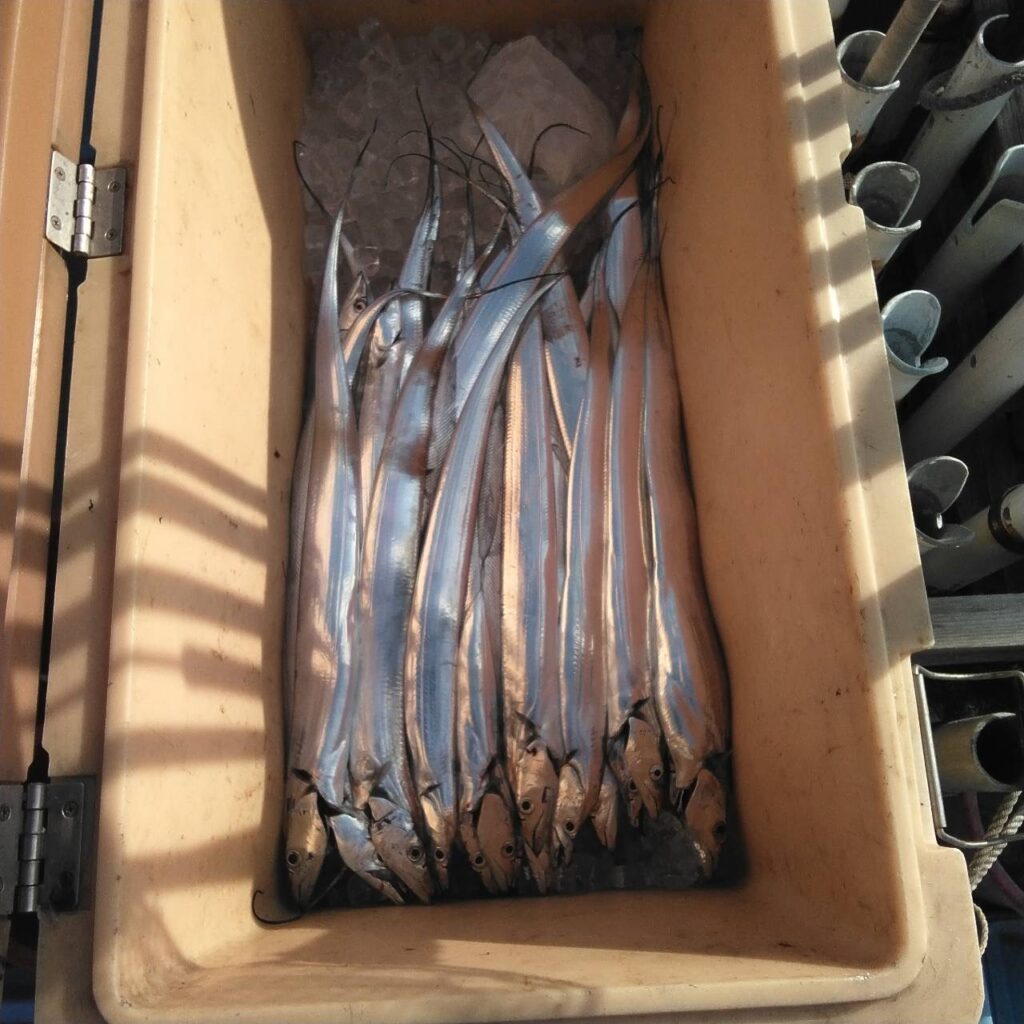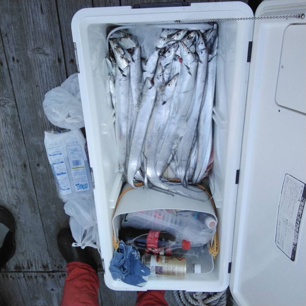 よくボイルしていましたよ。2時間ぐらいシャクったがヒットなしで、タチウオに走り、反応もよくて、ホイホイ釣れましたよ。お土産は釣ってくれました。後半はドテラで流したがヒットなしでした🥲