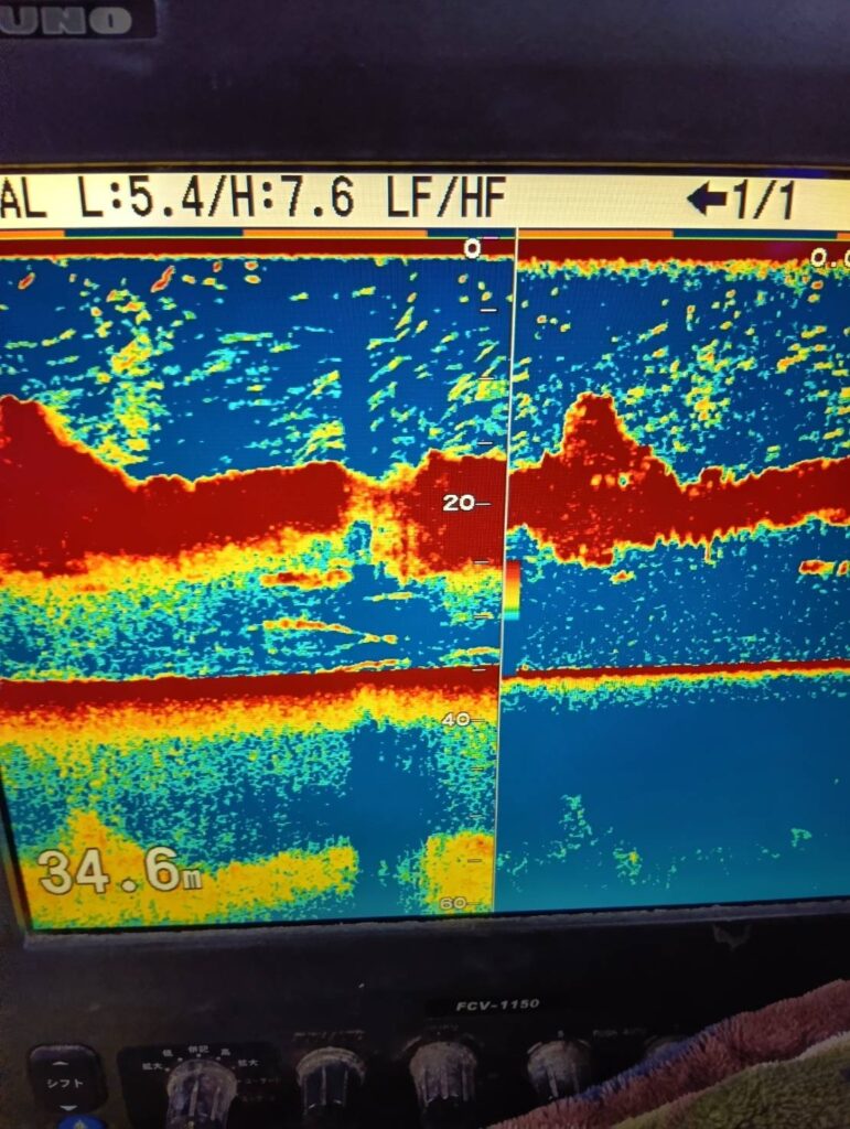 今日も出ましたよ。うなりがあって朝一のポイントはベイト反応がなく、湾内に走りベイトはもりもりだんごで魚の反応はあるが当たりなくまた沖に走りタイラバでマゴチとホウボウがポツポツと釣れましたよ。マダイはヒットなしでした。下潮に青物のポイントに反応はあったが当たりなしでした。魚はいますよ。いつ爆釣になるのやら…楽しみです。