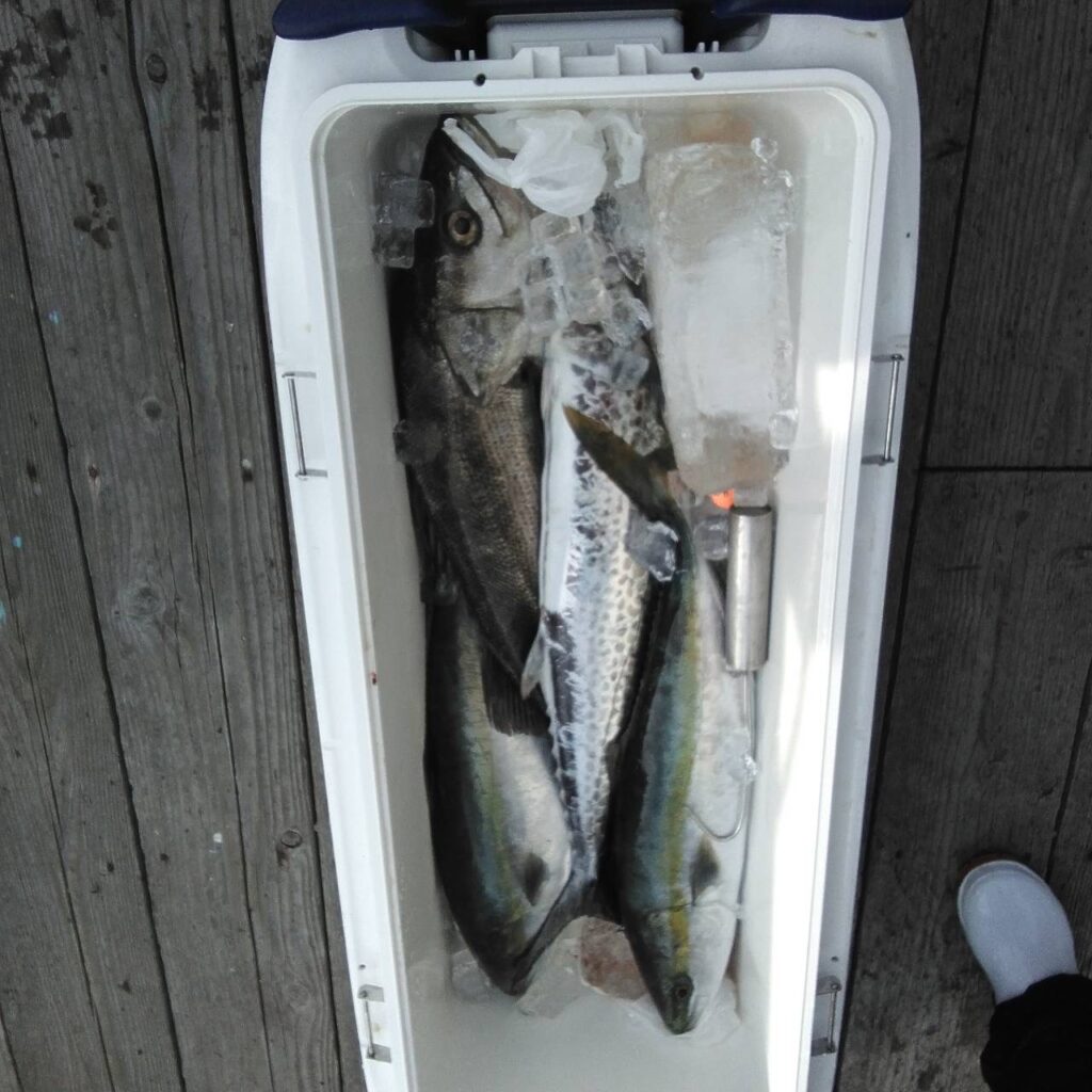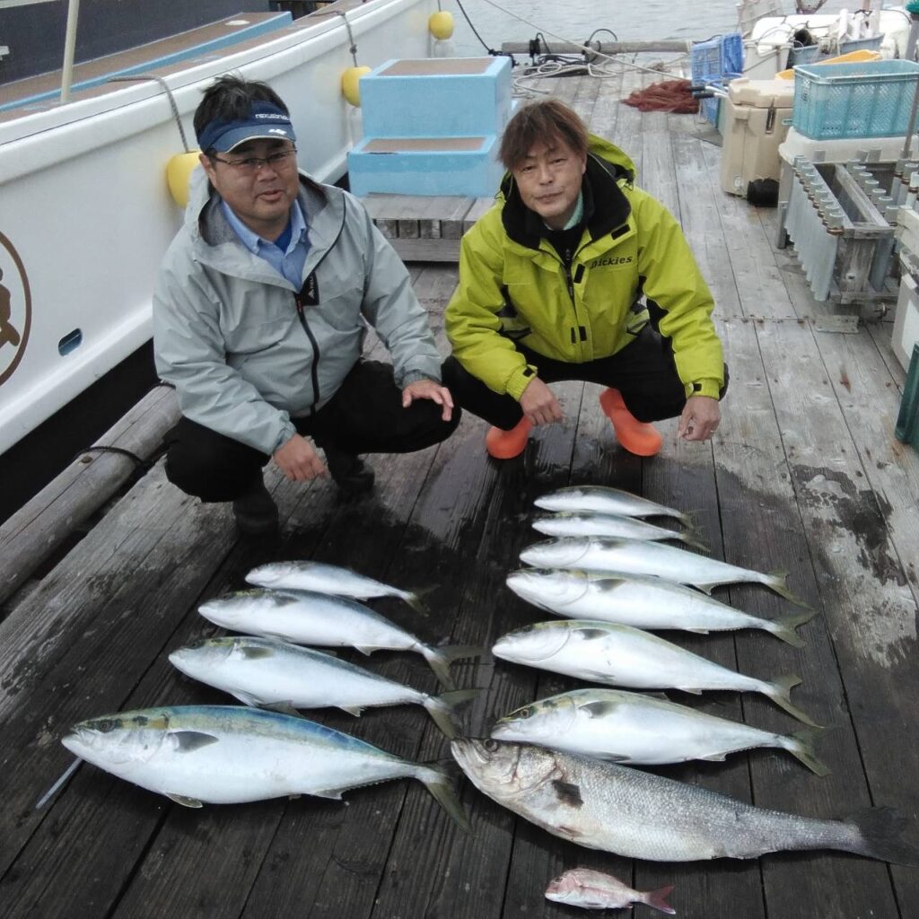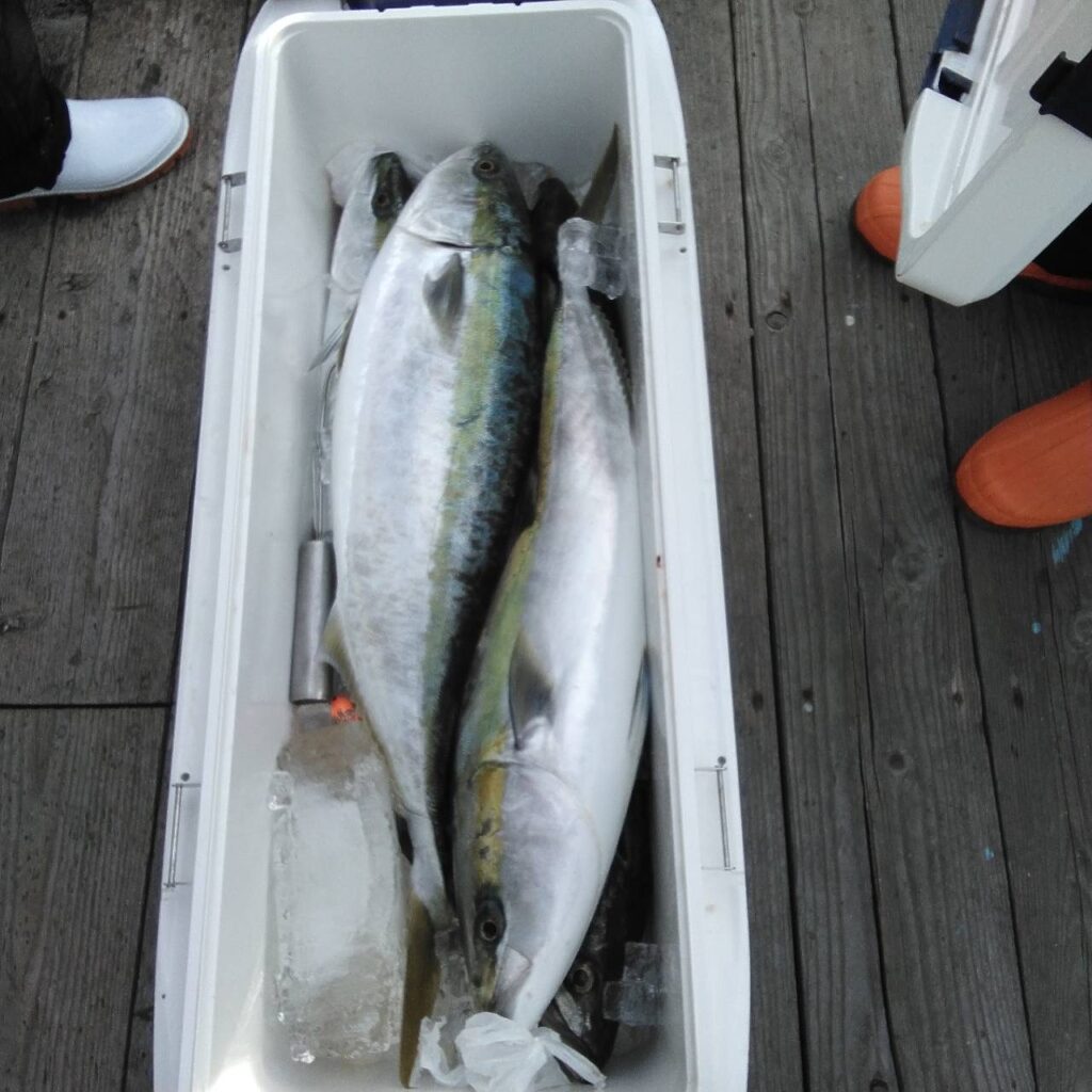 今日も出ましたよ。天気もよく、沖に走りブリとワラサもサワラがよく釣れましたよ。湾内もベイトはもりもりだんごで、大きなシーバスとワラサが釣れました。みなさん、よく釣ってくれました。お疲れさまでした。ご乗船ありがとうございました。