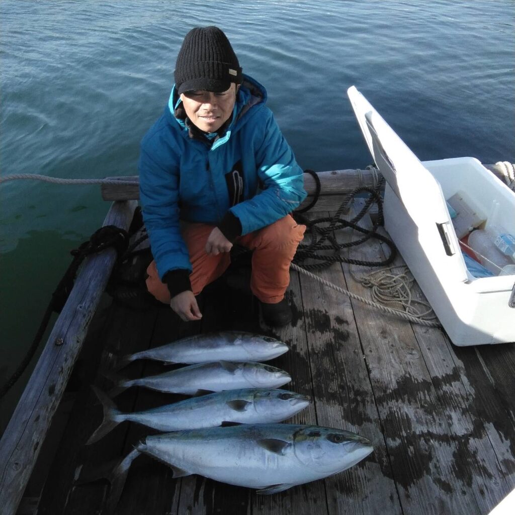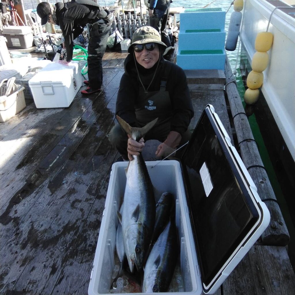 今日も出ましたよ。朝一から沖に走り、鳥山もあちらこちらで、魚の反応もよくブリとワラサがよく釣れました。連鎖もありました。