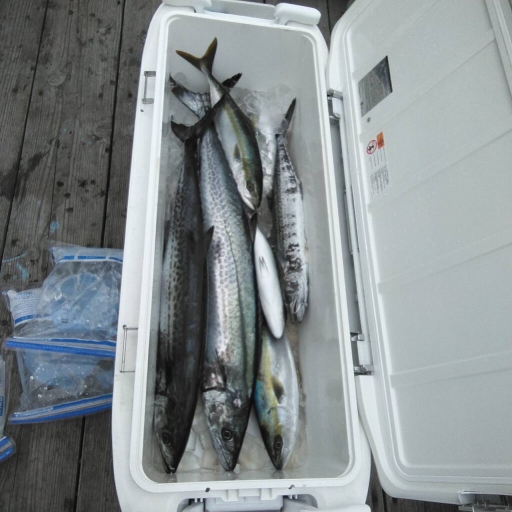 今日も出ました。天気もよく鳥山があっちもこっちもボイルしていましたよ。サワラがよく跳ねてましたよ、ヒットするとサワラでした。後半に青物が混じりました。タイラバでマダイも釣れました。サワラのバラシも多かったです。