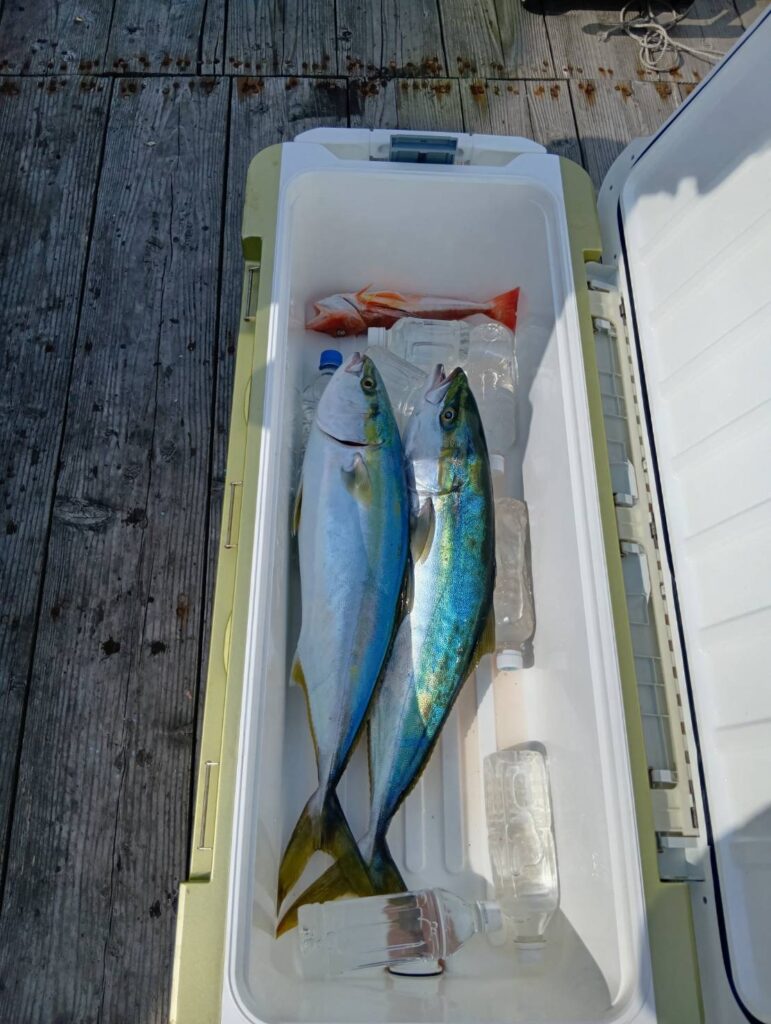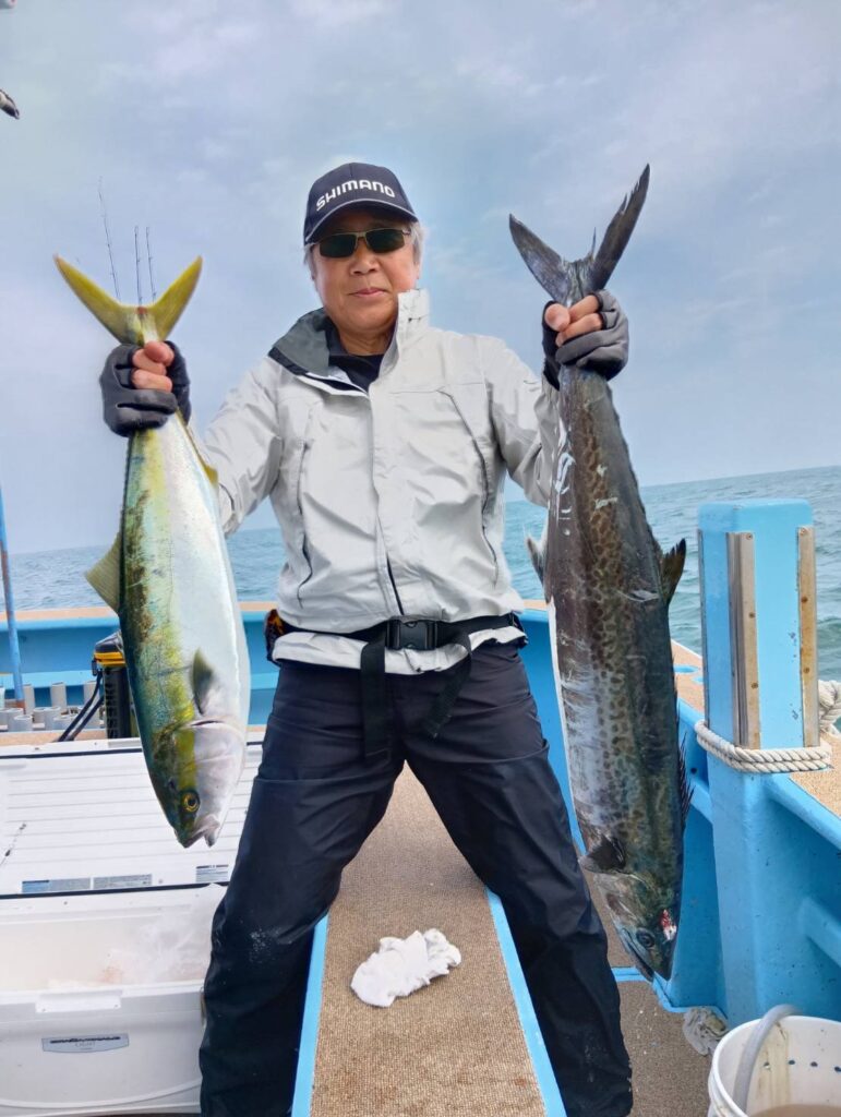 今日も出ましたよ。朝一、沖に走りワラサがバタバタと釣れました。ベイト反応も良かったです。後半に鳥山で大きなサワラとワラサが釣れました。バラシもありましたよ。魚はいますよ。今日はジグで頑張ってくれました。