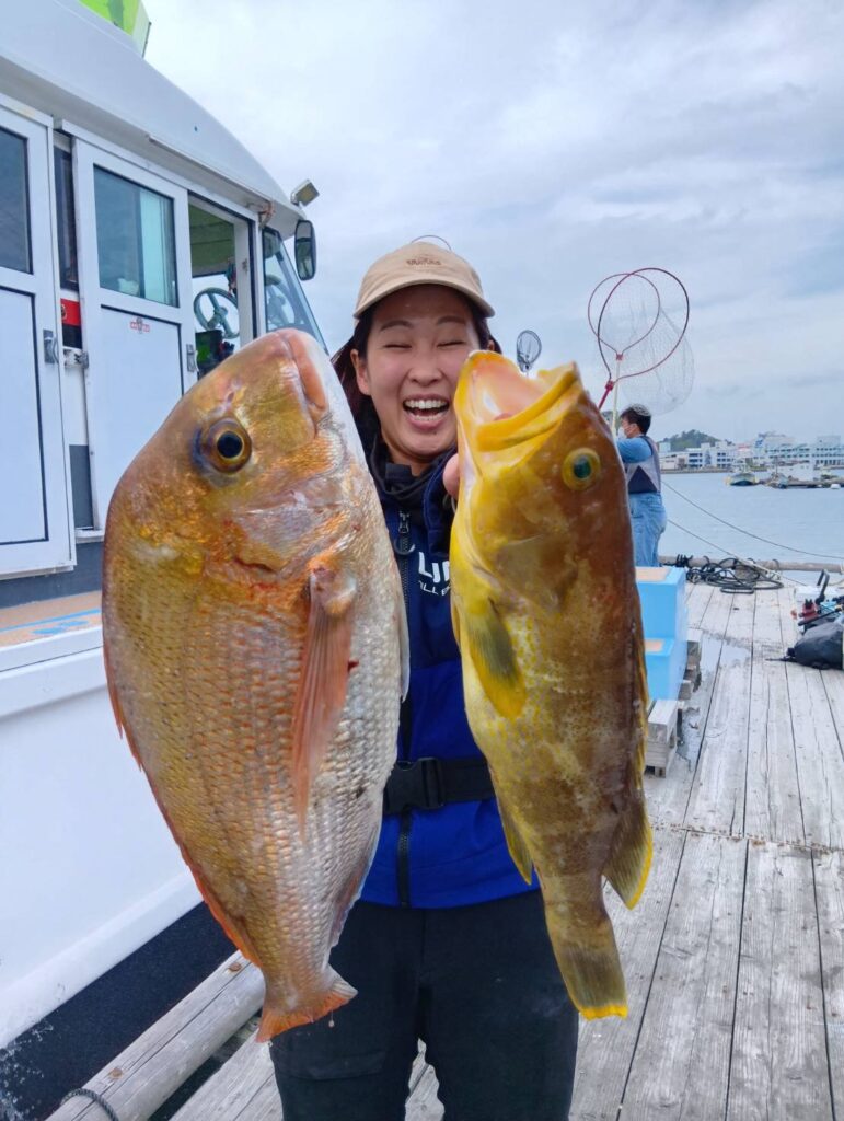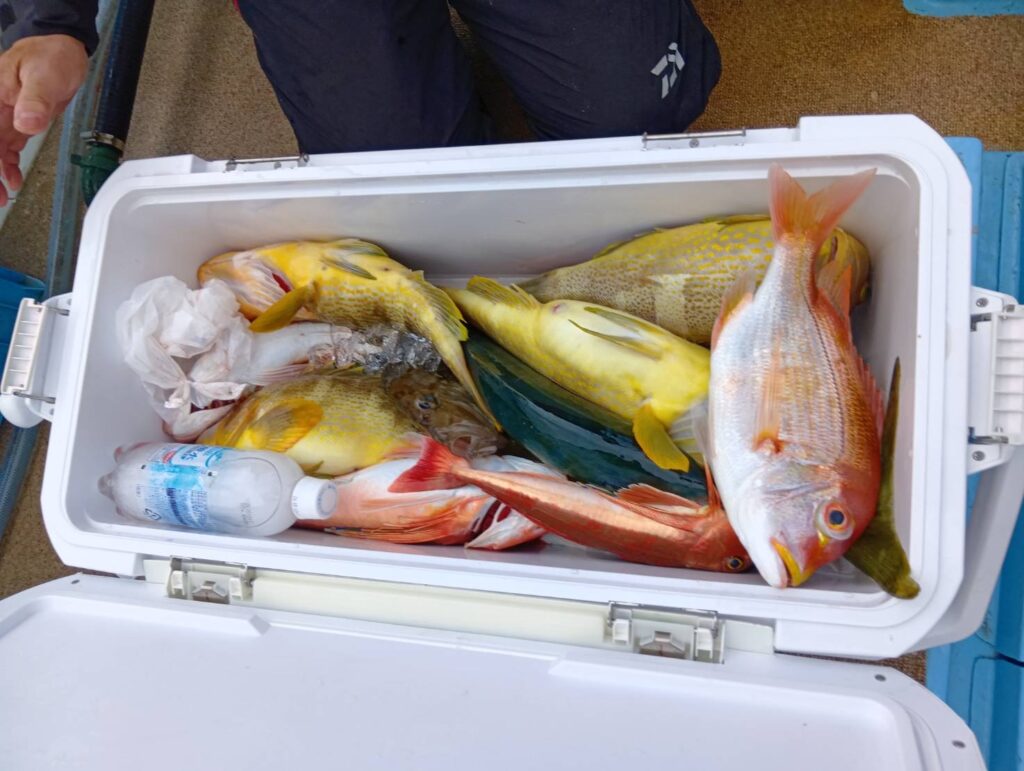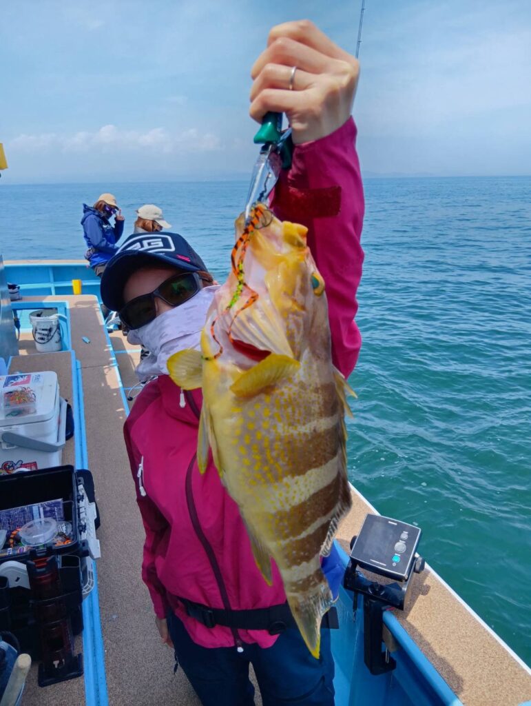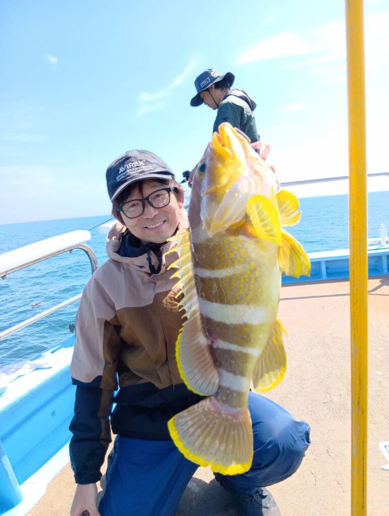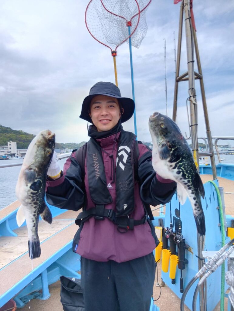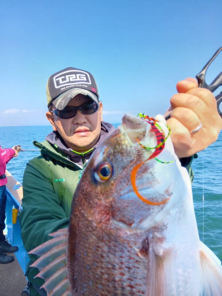 タイラバでマダイとワラサとアオハタとホウボウが釣れました。マダイのタモ入れでバラシました。いいマダイでした😭 ジグでトラフグがよく釣れましたよ。1人3匹ずつゲットしました。今日は初心者の方もよく頑張ってくれました。お疲れさまでした。