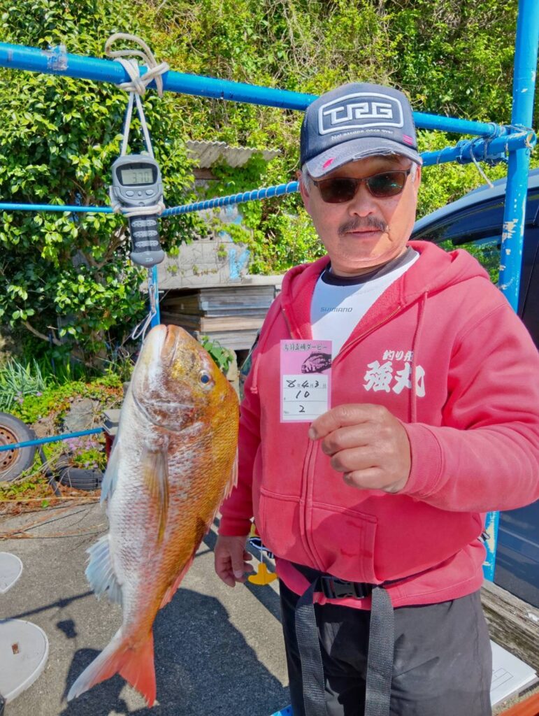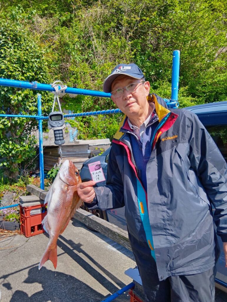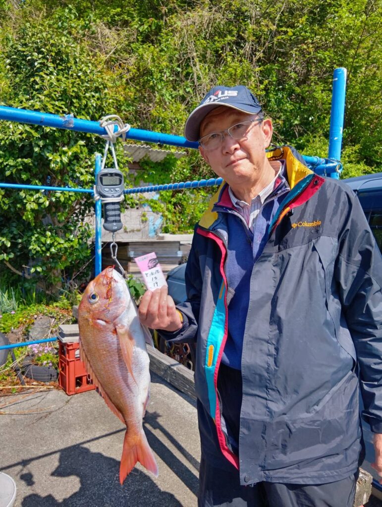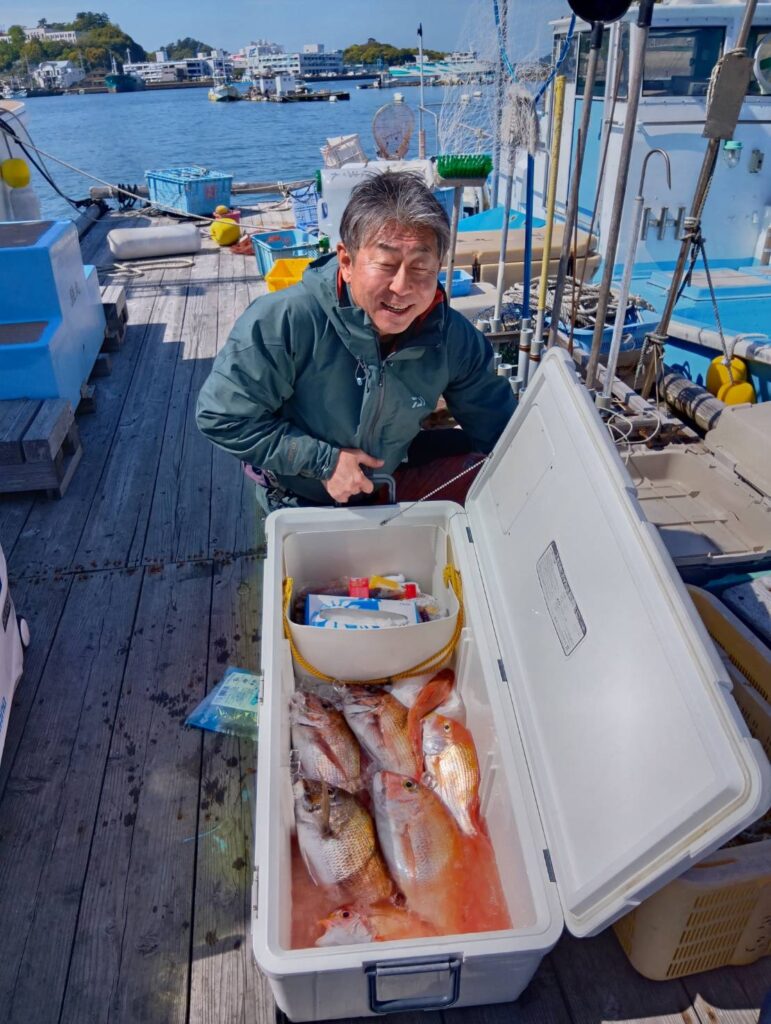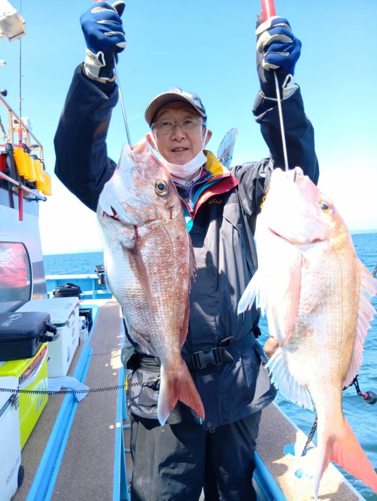 今日も出ましたよ。朝から波も高くて船酔いしている方もいましたよ。段々波もおさまりタイラバでマダイがよく釣れましたよ。3匹もエントリーサイズ釣っていましたよ。