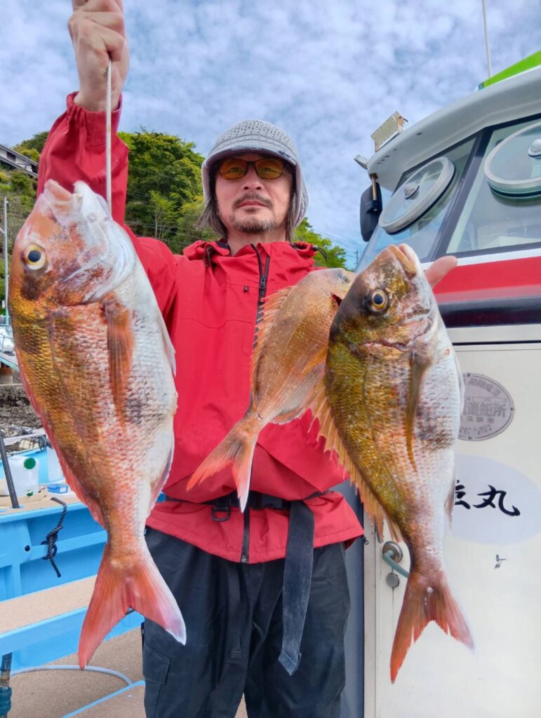 今日も出ましたよ。沖に走りうねりもあってべと潮でラインが汚れて一回ずつ掃除して皆さん大変でした。マダイも釣れたが今日は渋かった