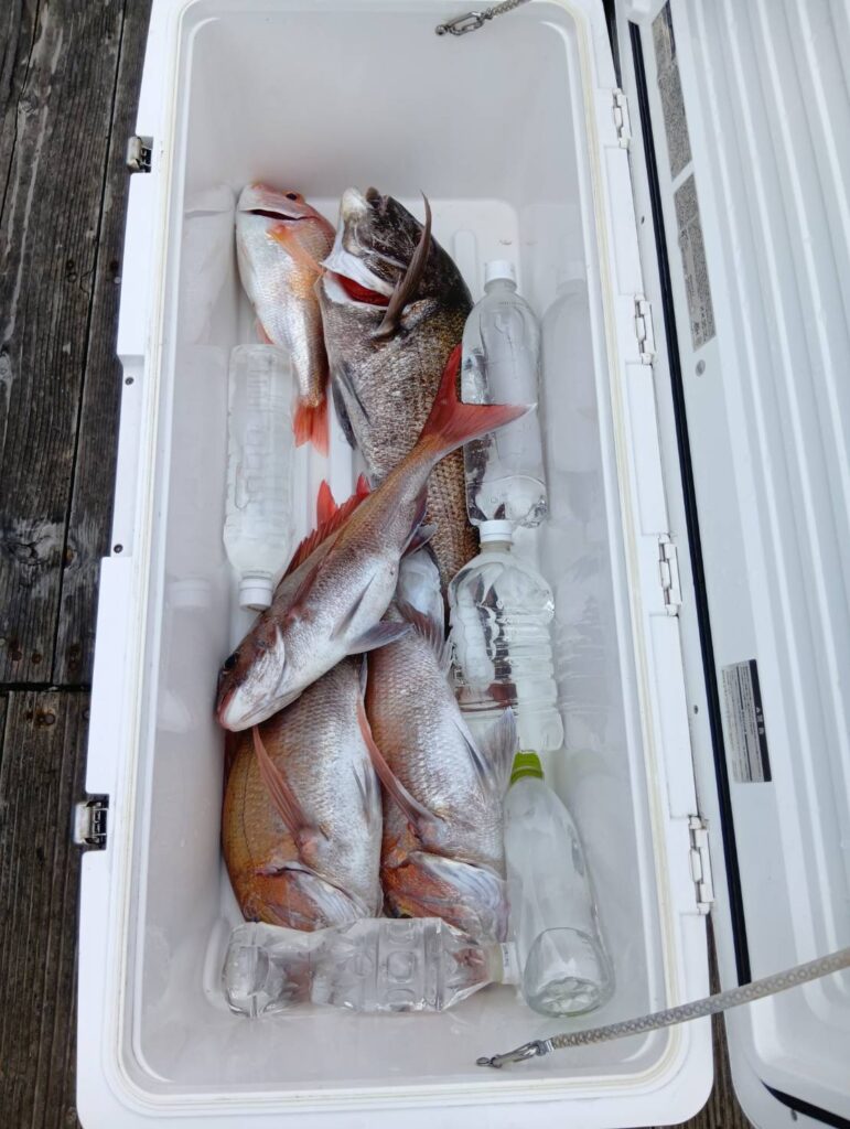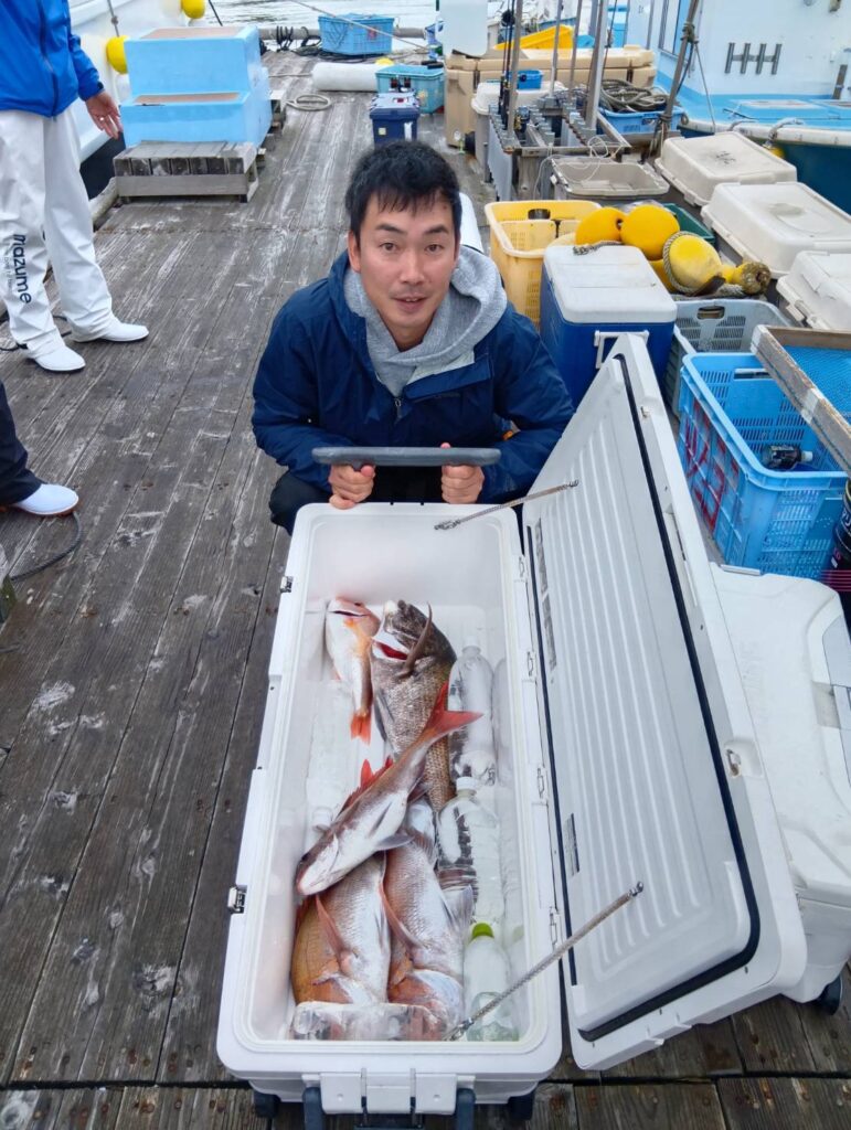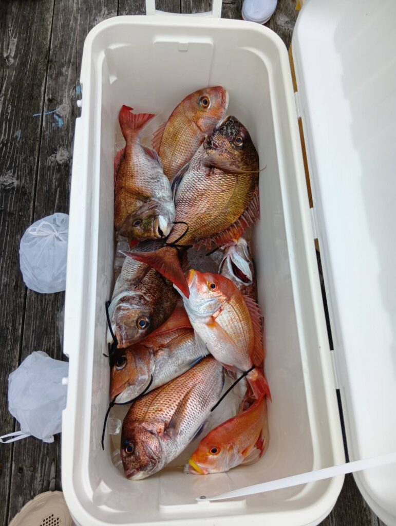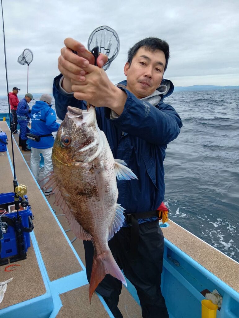 今日は反応が良かったです。これからです。ノッコミ真鯛がだいぶ入ってます。楽しみですよ。タイラバのヘッドは80〜200までお願いします。
