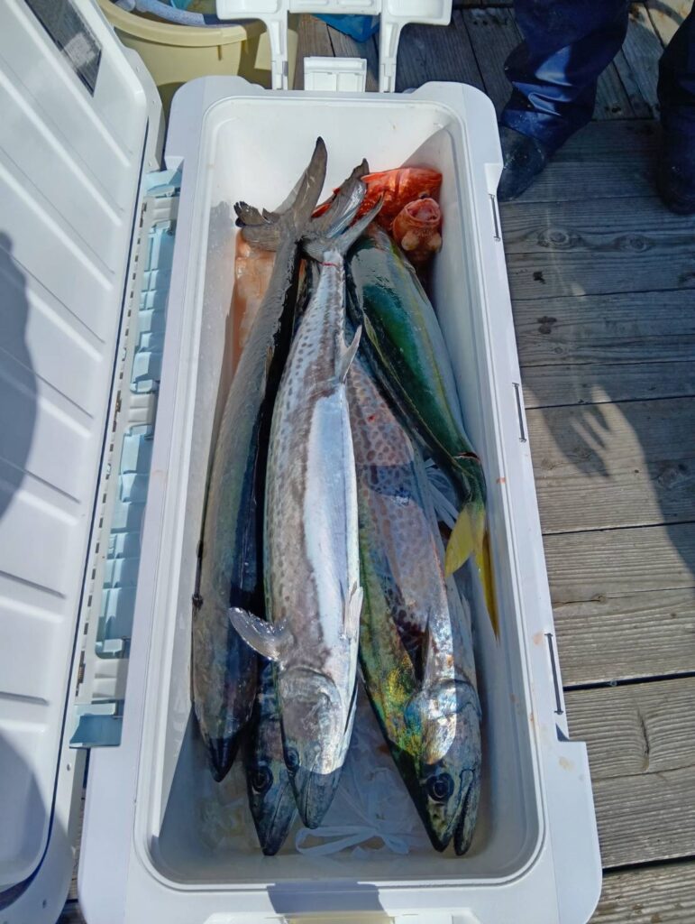 今日も出ましたよ。朝一から風も残っていて鳥山だらけでドテラ流しでサワラとワラサが釣れましたよ。ラインカッターも多かったです。