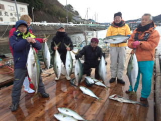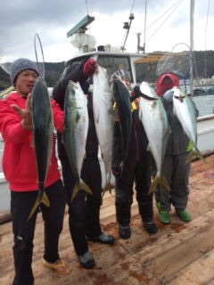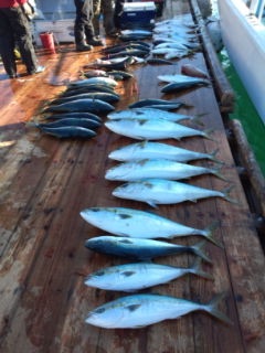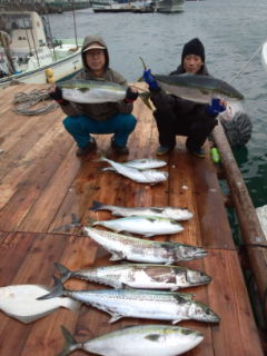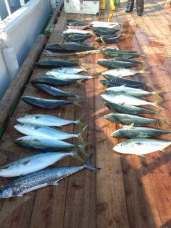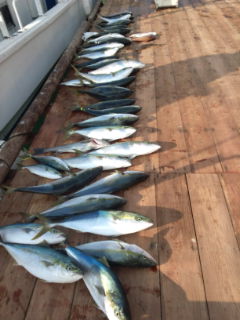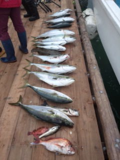 朝からワラサがポツリポツリとヒットしベイトはもりもりでじあいにブリがよくヒット