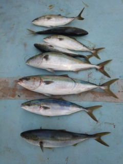 今日も朝から沖に出てサワラ5匹とワラサ1匹ゲット!!
