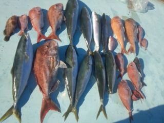 今日も 三代目もワラサ サワラ マダイ キジハタをゲットしました シャクリもさまになってきました(^-^)