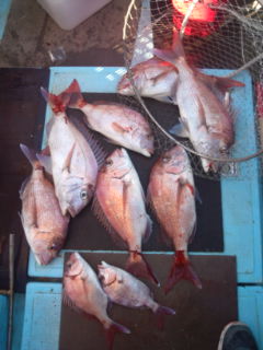 今日も大風で、釣りづらく加布良古水道でジグとタイラバでマダイヲ8匹ゲットしました!!!