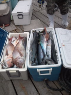 今日はジグでサワラとマダイがボツボツとヒットしました!!