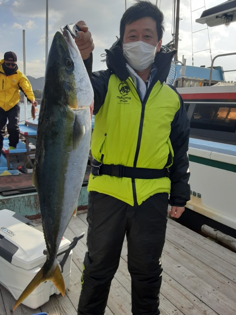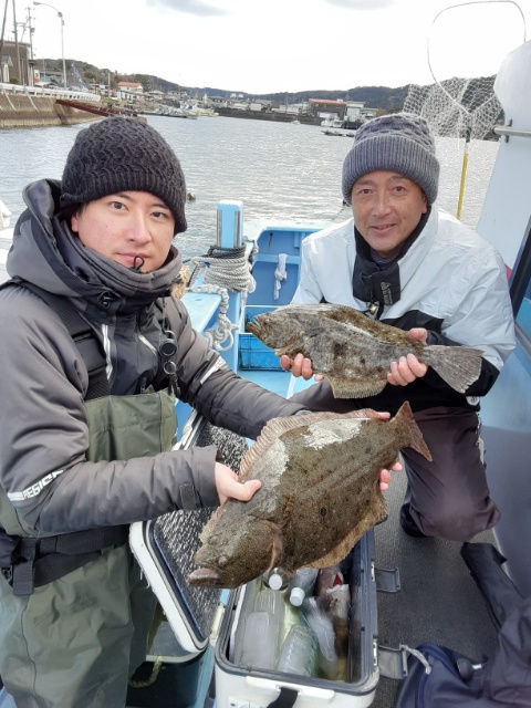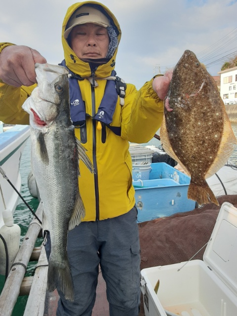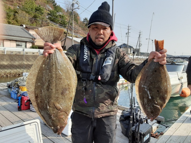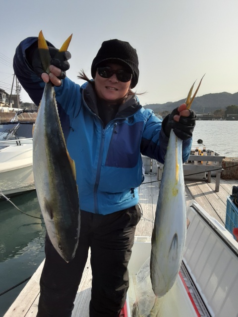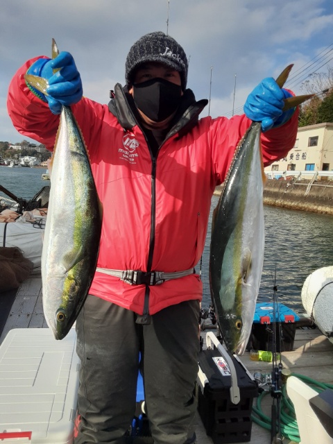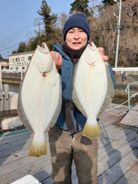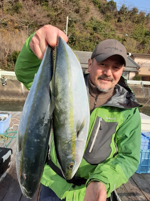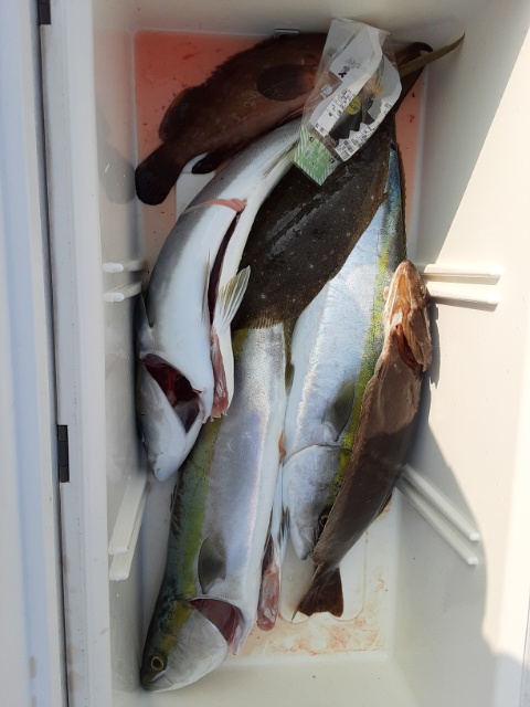 朝から沖へ走りワラサ、ヒラメが釣れて