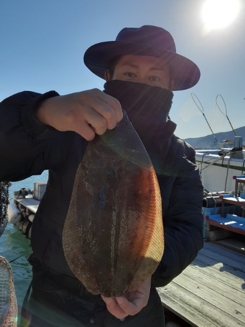 今日は朝からヒラメを2枚上がり