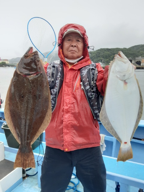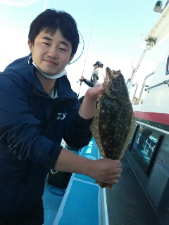 ヒラメ 42cm〜54cm。0〜2枚。船中12枚。
