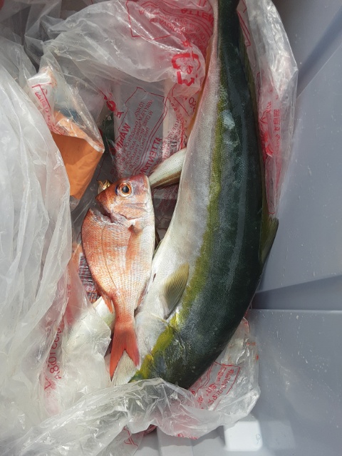 良型マダイまでとハマチ、大サバ(マサバ)、